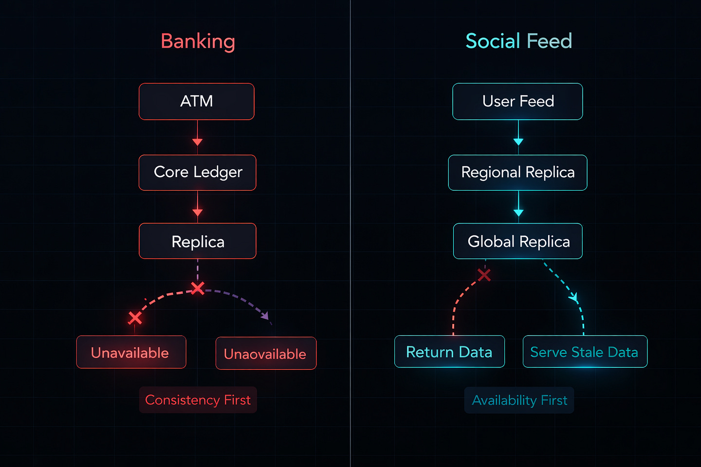 Here’s what actually happened: The ATM lost connection to the central database. Instead of guessing your balance (which could let you overdraw), it shut down. The bank chose Consistency over Availability.