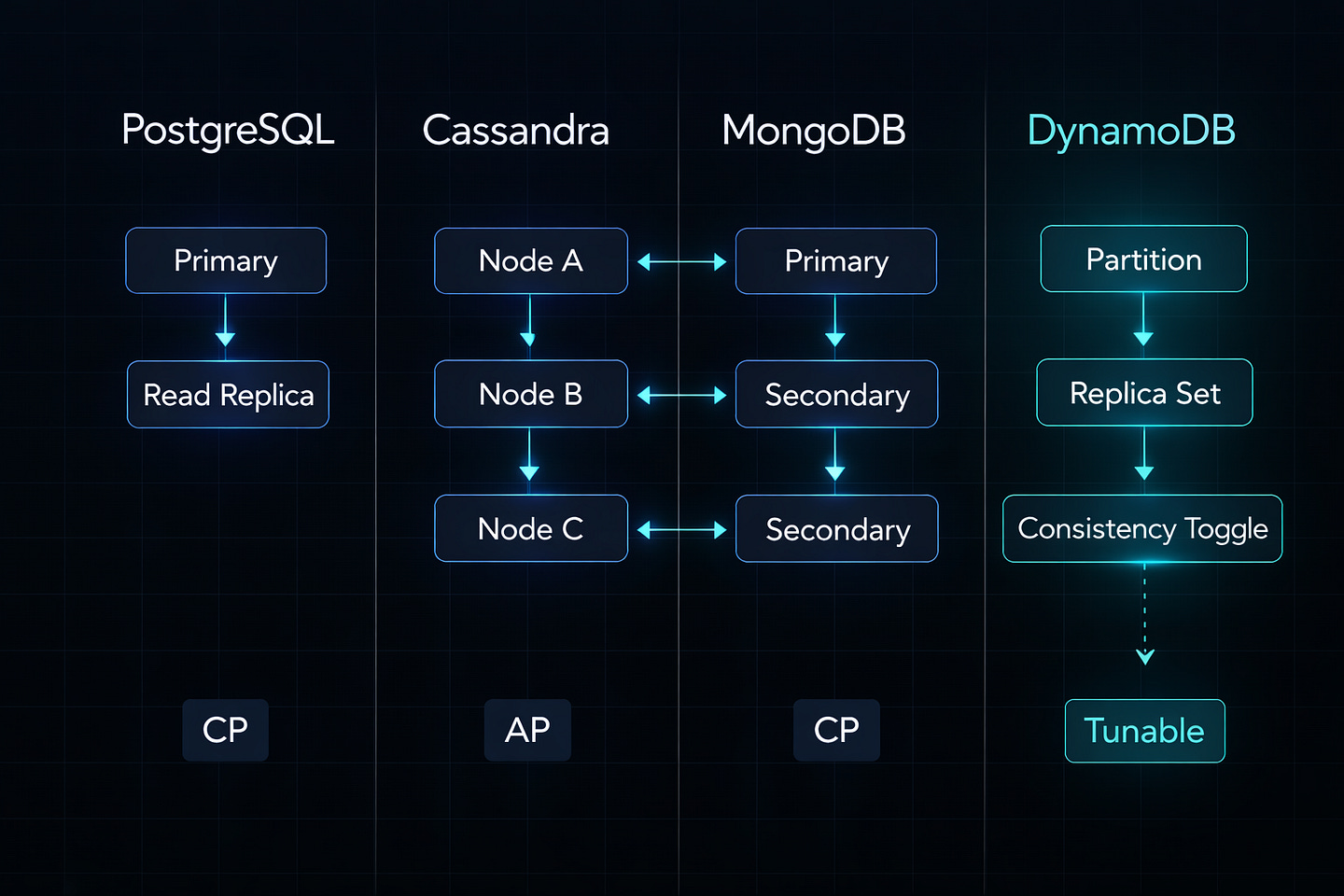 3. Availability vs Consistency is a spectrum Tune it per operation, not system-wide.